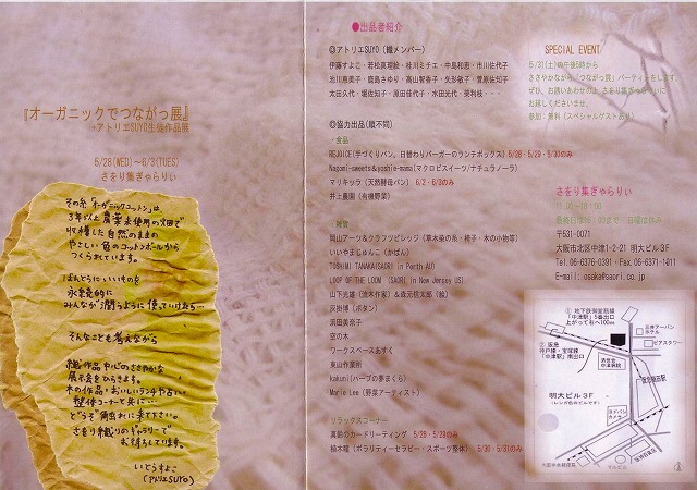 会場:さをり集ぎゃらりぃ(地下鉄御堂筋線「中津駅」5番出口を上がって右へ100m)