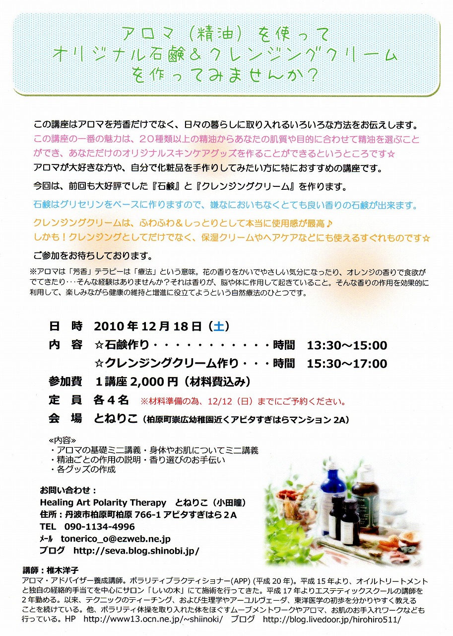 内 容:☆石鹸作り・・・・・・・・・・・・・・・・時間 13:30~15:00